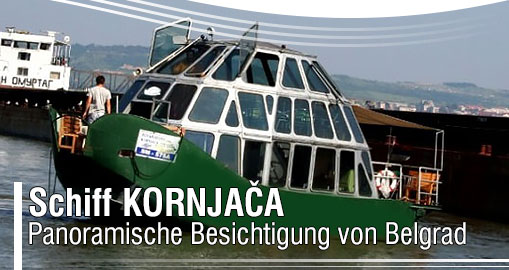 Touristisches Schiff Kornjača ist 12 m lang. Es hat einen großen geschlossenen Salon mit dem Schanktisch, zwei Etagen, Beschallungsanlage.