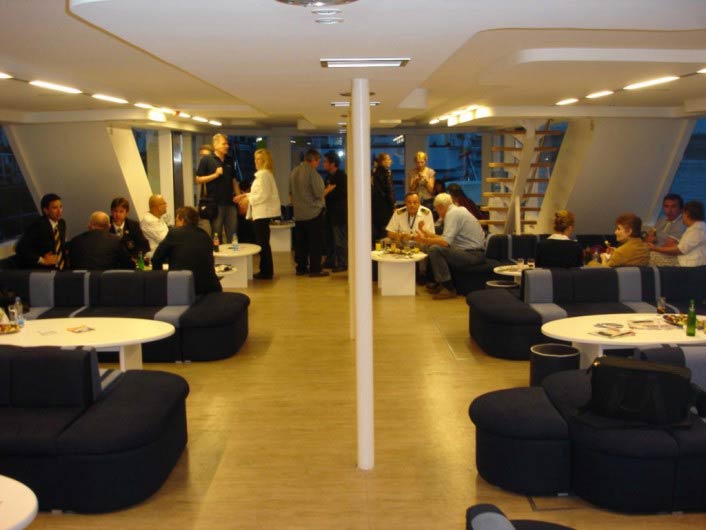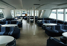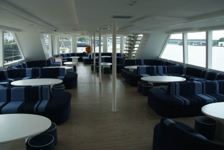 Schiff Goldenes Herz ist ein luxuriöser Katamaran mit der Kapazität von 150 Passagieren. Es hat einen geschlossenen Salon, eine groβe Terrasse für 80 Passagiere und eigene Küche.